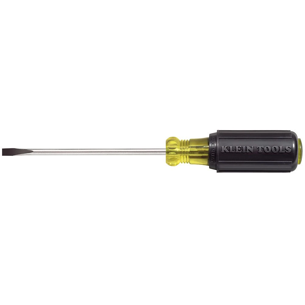 The narrow cabinet tip of this screwdriver gives your blade access in places where space is limited. Klein’s exclusive cushion-grip handle offers greater torque and outstanding comfort. The patented Tip- Ident¨ quickly identifies the type of screwdriver and screwdriver tip orientation. Premium chrome plated for smooth feel and corrosion resistance.